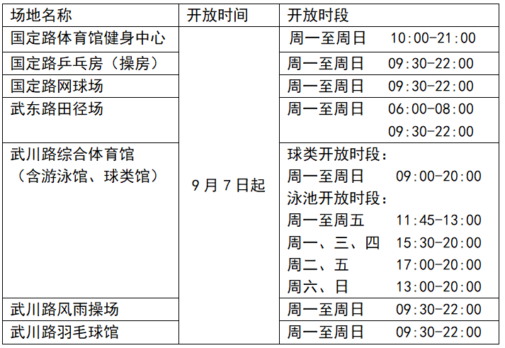 1、课程教学、运动队训练、体育社团活动期间不对外开放,训练活动时间另行通知。