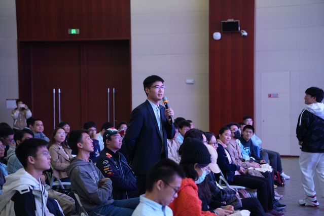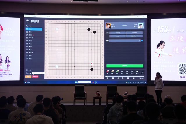 在开场环节,两位校友表达了获得冠军后再次回到校园的喜悦,并向同学们分享了亚运会中自己的心路历程。随后,两位冠军获得者分别选取了自己在亚运会上的经典战役进行解说。於之莹复盘了半决赛对阵日本棋手山野梨纱的关键棋局,对其中一些关键点进行的详细分析,并对同学们的问题一一解答。汪雨博则对预赛第四轮对阵中国香港棋手杨蒨祺的棋局进行了细致解说,分享了当时棋局中的一些自我感受。在解说完毕后,两位棋手与同学们展开了深入的互动交流,回答了同学们关于比赛、训练和学习围棋等方面的问题。
