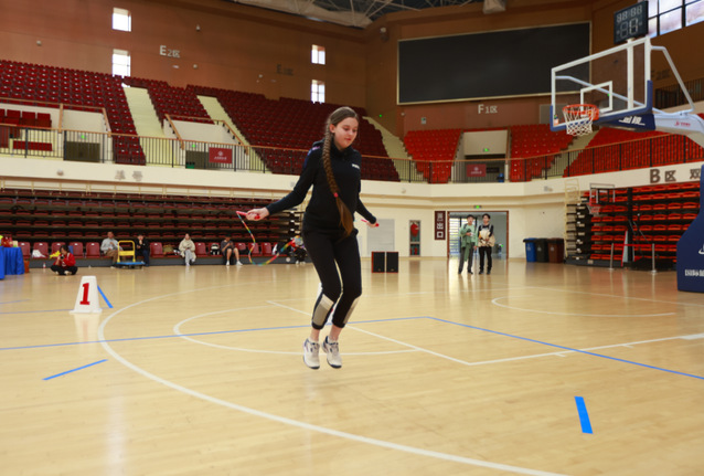 11月14日下午,上海财经大学第32届运动会跳绳比赛在国定路校区体育馆隆重开赛。本次比赛共有15个学院的400余名学生参加,比赛设置了30秒单摇速度赛,3分钟10人长绳8字跳,30秒双摇速度赛,30秒交互绳速度赛,30秒两人一带一单摇跳,3分钟10人长绳集体跳,4*30秒单摇接力,3分钟摇速度耐力赛共8个项目。