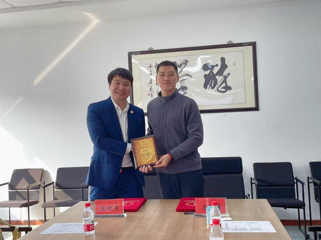 体育教学部直属党支部书记吕季东、副主任董敏凯首先对傅佳斌先生回到母校表示热烈的欢迎,对校友的拳拳爱校之心表示衷心的感谢,双方对学校体育事业发展展开深入交流,傅佳斌校友表示本次捐赠是一个开始,未来个人捐赠将常态化,助力学校健美操队再创辉煌。