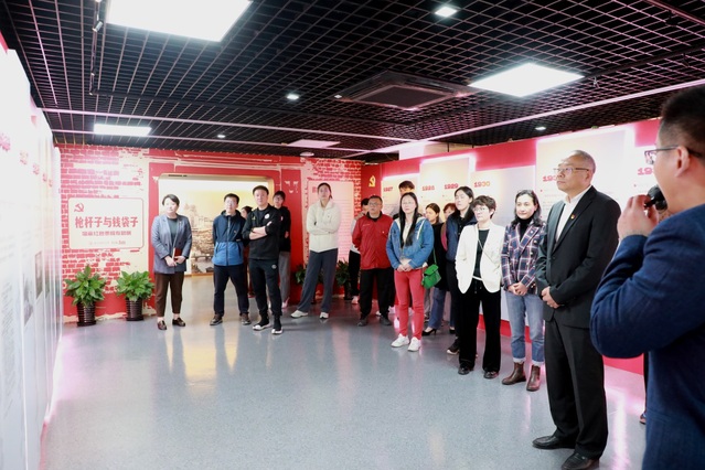 为深入学习贯彻习近平新时代中国特色社会主义思想和党的二十大精神,构建“资源共享、优势互补、互学互鉴、共同提高”的党建工作新格局,推动党的建设与体育事业发展深度融合。2024年4月9日下午,体育教学部直属党支部书记吕季东和副主任董敏凯带领全体教师赴档案馆(校史馆)/ 博物馆,与三馆直属党支部进行交流,三馆直属党支部书记喻世红、档案馆(校史馆)副馆长王雅静、博物馆副馆长韩云云和全体党员参加了此次交流。