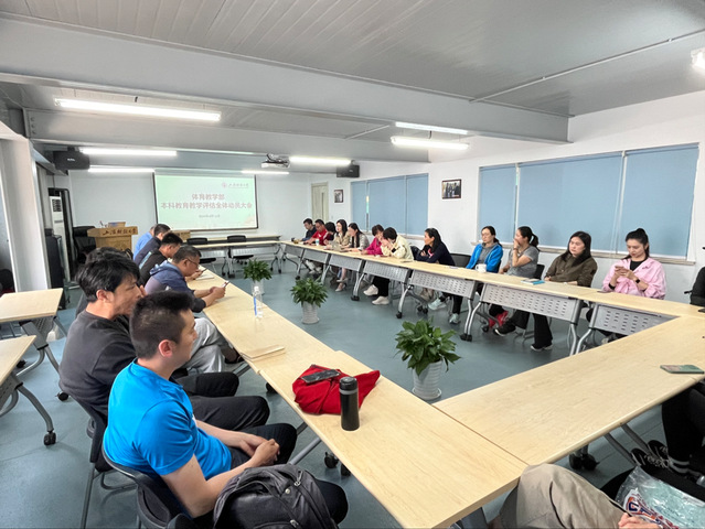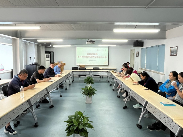 4月16日上午,为进一步做好本科自评自建工作,体育教学部召开本科教育教学审核评估院部预评估动员大会,体育教学部直属党支部书记吕季东老师、副主任董敏凯老师、全体教职工出席会议。会议由副主任董敏凯主持。