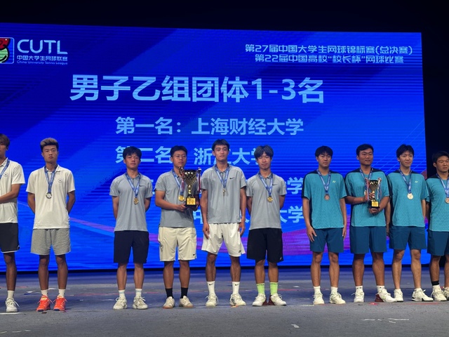 7月22日至8月1日,第27届中国大学生网球锦标赛(总决赛)在上海大学如期展开,这项全国最高级别的大学生网球赛事吸引了来自各地的100多所高校的1000多名运动员参与,我校网球队共派出14名运动员参赛。在主教练章凌凌老师的带领下,校队队员在期末考试结束后便投入到了为期二十余天的高强度集训中。经过数日的激烈角逐,我校学子分别斩获了乙组男子团体和男子单打两项冠军头衔,以及乙组女子单打亚军和丁组女子单打季军等诸多荣誉。