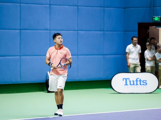 8月15日下午,中美友谊赛中团体赛在旗忠网球中心室内馆打响。来自我校商学院的2021级本科生邓兆桦同学在中方第一场惜败的情况下,临危不惧,挽救了两个赛点,以7:5拿下比赛,为中方赢下关键一场。最终中方男队以2:1逆转美方男队,取得了男子团体冠军。