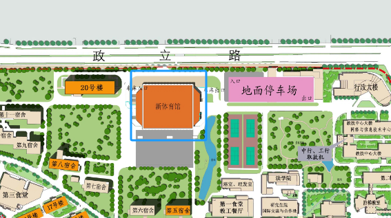 学校主体育馆位于上海财经大学国定校区东北部,地上三层(地下一层),包括篮球场、健身房、乒乓房、体操室、跆拳道室等功能区域,曾承办过上海市运会开幕式、世界跳绳锦标赛、东京奥运会空手道积分赛、世界舞蹈明星盛典等重要赛事活动。