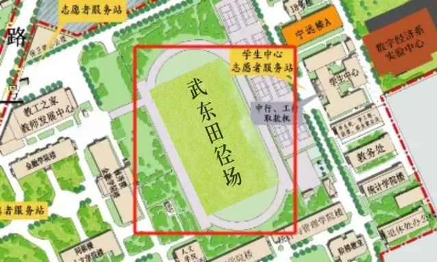 武东田径场位于武东校区中心位置,包含标准足球场1片、篮球场3片,标准400米跑道及多功能健身区1片。除教学、运动队训练、校级赛事和协会活动时间外,对全校师生免费开放。