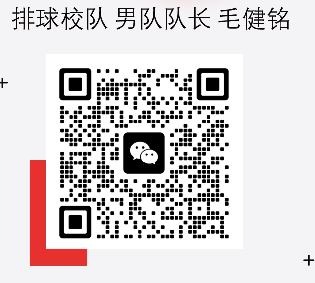 如果想要加入校队,需要扫码填写报名表,并参与后续入队选拔,考核内容为排球垫传扣发基本功。