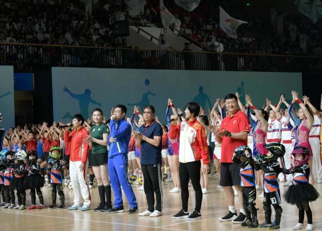 在运动员、裁判员代表相继宣誓之后,举行了本市青少年体育展示,让现场观众充分感受申城校园体育的蓬勃开展。充满东方武韵的武术表演《天地人和》展示了“少年强则国强”的青少年时代风貌。老中青三代教练员徐根宝、李秋平、诸韵颖携手百余位足篮排三大球青少年爱好者共同演绎了互动表演《掷地有声》,展现了青少年体育训练的活力与风采。