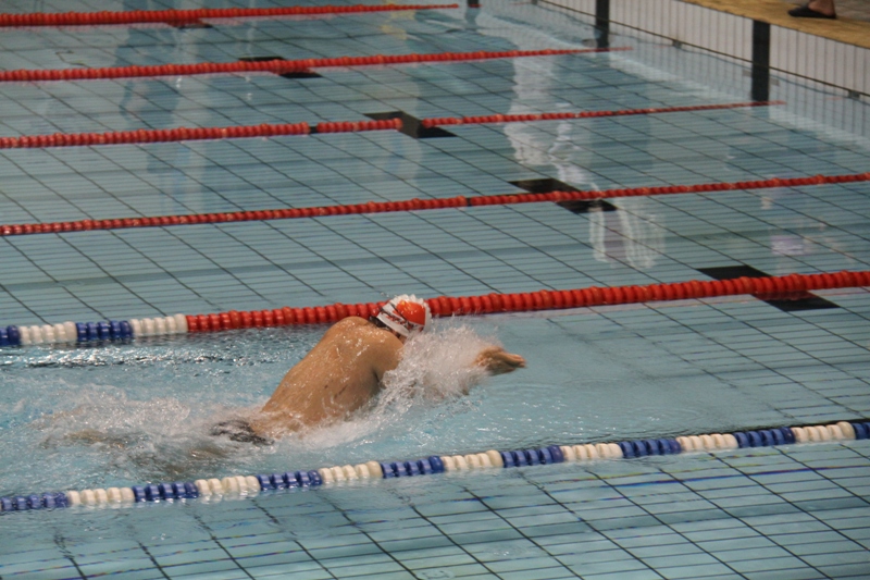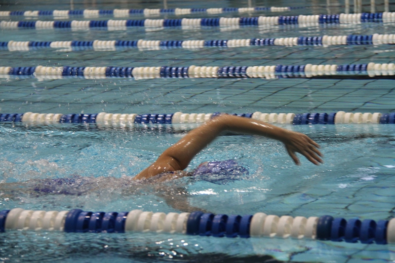 九时整,随着第一项男子25米蛙泳运动员入水,游泳比赛正式开始。枪声响的瞬间,运动员犹如离弦之箭向着终点冲刺。场内人声鼎沸,加油声不绝于耳。接下来进行的男子50米蛙泳,女子25米蛙泳,25米自由泳等比赛也同样十分精彩。