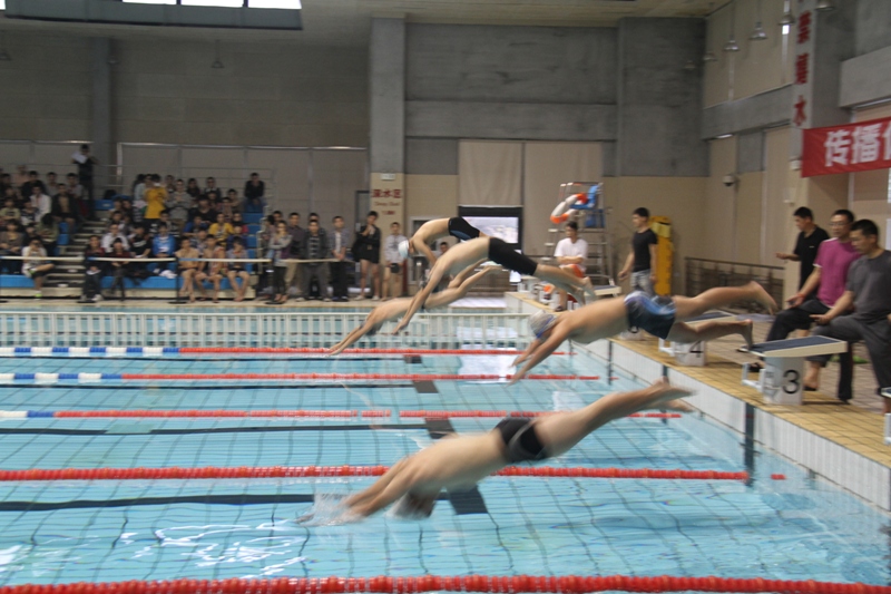 10月27日上午,我校第二十一届校运动会游泳比赛在校游泳馆拉开帷幕。八点开始就陆续有运动员提前到场做准备活动,更有激情的啦啦队制作了一系列横幅为自己支持的运动员鼓劲加油。