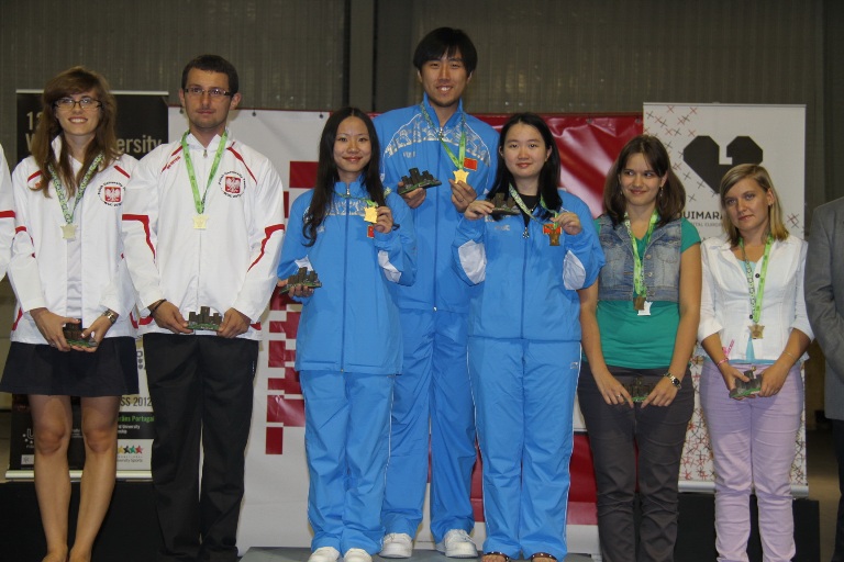 第12届世界大学生国际象棋锦标赛,北京时间8月26日在欧洲文化之都葡萄牙吉马良斯降下帷幕。受中国大学生体育协会委派,由上海财经大学学生组成的中国大学生代表队经过9轮瑞士制的激烈争夺,最终包揽3枚金牌。来自17个国家共计62名大学生运动员参加了本次赛事。其中,男子国际特级大师5名,国际大师4名,女子国际特级大师6名,以及女子国际大师3名。在男子组个人比赛中,我校法学院学生等级分排名本次比赛第一的卜祥志,以较大优势获得冠军。在去年世界大学生运动会中为中国代表团争得2金,同样来自法学院的学生谭中怡,在最后一轮中力压俄罗斯对手,以微弱优势夺得女子组个人冠军。另一名来自人文学院的学生章晓雯获得女子个人第4名。凭借这3名运动员的出色发挥,中国队以领先第2名波兰队一个轮次的巨大优势,赢取了本次比赛的团体第一。这是中国大学生队继第9届世界大学生国际象棋锦标赛以后,第2次包揽3枚金牌。这也是上海财经大学自2000年成立国际象棋高水平运动队以来,在体教结合工作中取得的又一次辉煌成绩。据计算,通过本次比赛,卜祥志、谭中怡和章晓雯的国际等级分将分别上涨12.5分、4分和3.5分。