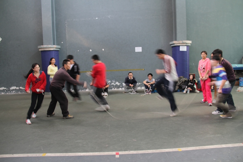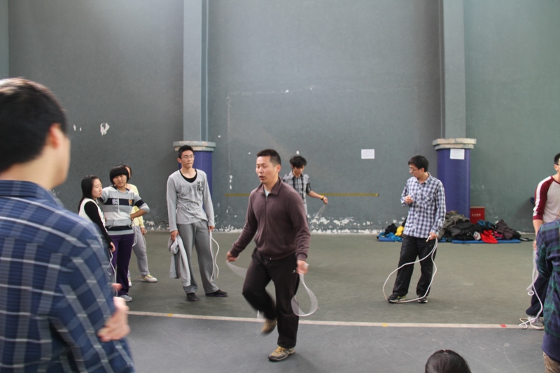 训练队于每周二、周四的中午进行集训,三周后队员们已经具备了较好的短绳、长绳和花色短绳的技术。经过初步筛选,有29名队员代表上海财经大学参加即将于12月1日在上海交通大学医学院举行的“阳光体育大联赛”跳绳踢毽子竞赛。虽然训练时间有限,但是每个队员都积极投入到每次的训练中,在蔡颖敏老师的指导下,大家勤于操练,不断进步。