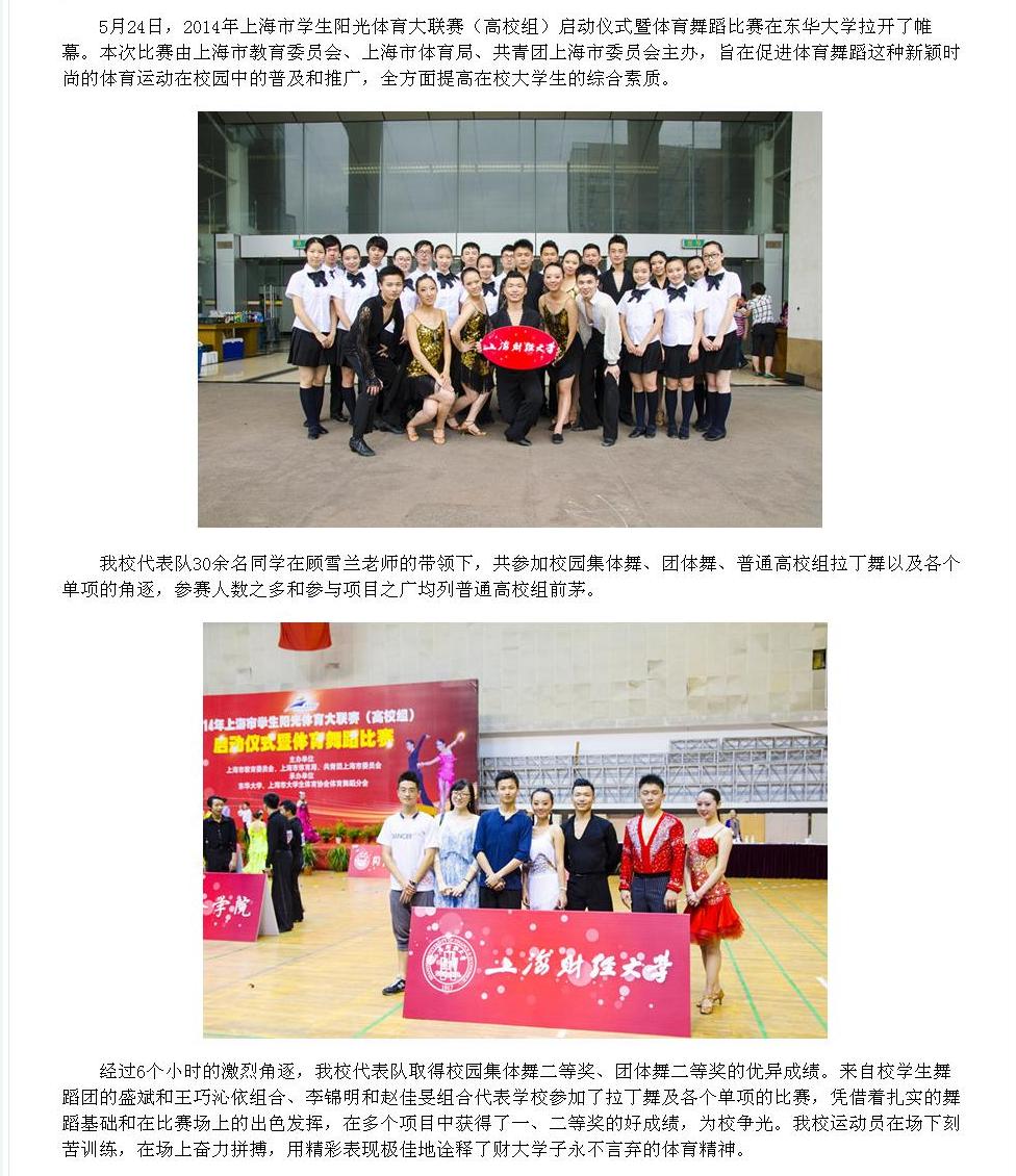 我校代表队在2014年上海市学生阳光体育大联赛体育舞蹈比赛中取得佳绩