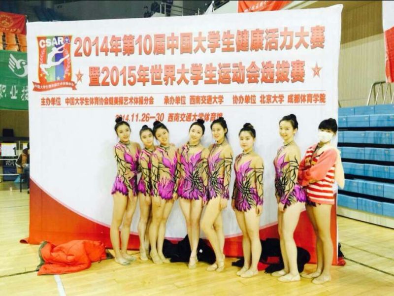 2014年11月26-30日,第十届中国大学生健康活力大赛暨2015年世界大学生运动会选拔赛在四川成都西南交通大学体育馆隆重举行。此次比赛由中国大学生体育协会健美操艺术体操分会主办,是目前国内最大的健美操、艺术体操和啦啦操综合性赛事,此次比赛汇集了全国149所高校2900多名运动员参加。我校运动员在顾雪兰教授的带领下,在健美操项目上获得2枚金牌4枚银牌1枚铜牌和1项第四名,啦啦操项目获得2枚金牌和2枚银牌;艺术体操项目参加了高水平组别的比赛,在个人项目上获得3枚铜牌和1项第四名,还获得了高水平组艺术集体操第四名。