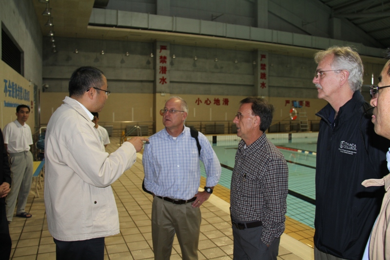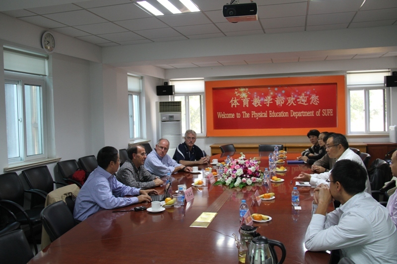 2012年11月12日,美国印第安纳大学公共健康学院院长Mohammad Torabi教授、David KOCEJA教授,伊萨卡大学健康与体育学院副院长John SIGG博士、中美教育合作交流项目主任关红卫博士至上海财经大学体育教学部进行访问,体育教学部主任吕季东、书记杜富华和教师代表热情地接待了来宾。双方就关心的体育教学、学科发展、场馆建设等议题进行了亲切友好的交流,随后,专家们参观了我校各体育场馆。来访专家对上海财经大学体育教学部取得的成绩表示了肯定和赞赏,并表示今后将继续加强校际之间的友好往来与合作,促进教师与学生交流,进一步推动共同发展。