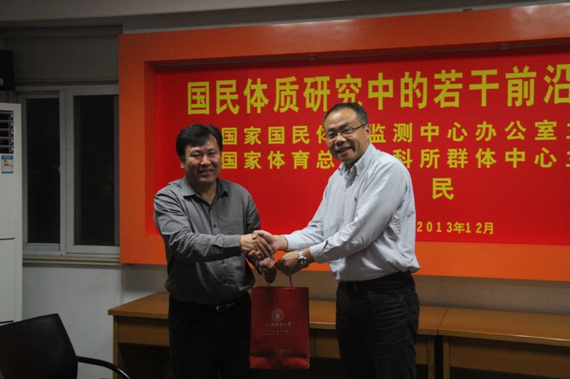 2013年12月3日下午2:30,国家国民体质监测中心办公室主任、国家体育总局体科所群体中心主任江崇民研究员为我校师生做精彩讲座,题目为“国民体质研究中的若干前沿问题”。体育教学部全体教师、体育经营管理专业研究生和校内外感兴趣的师生出席。