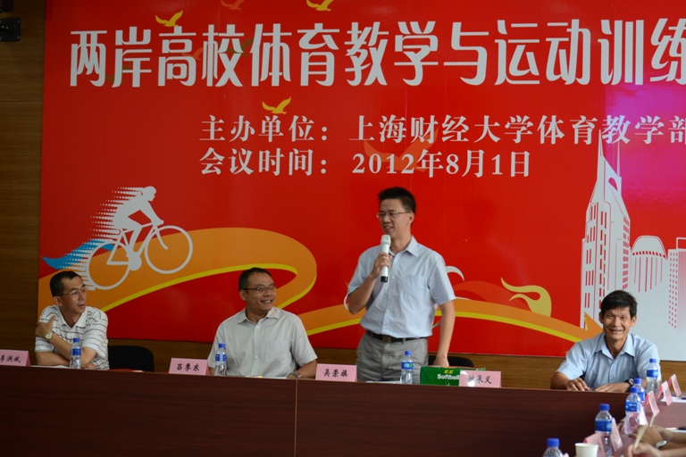 8月1日上午9时,2012年两岸高校体育教学与运动训练研讨会在上海财经大学中山北一路校区正式开幕,本次会议由上海财经大学主办,来自上海财经大学、上海体育学院、上海大学、屏东科技大学、中央大学、高雄大学、嘉义大学和长荣大学的三十余名专家学者出席会议。
