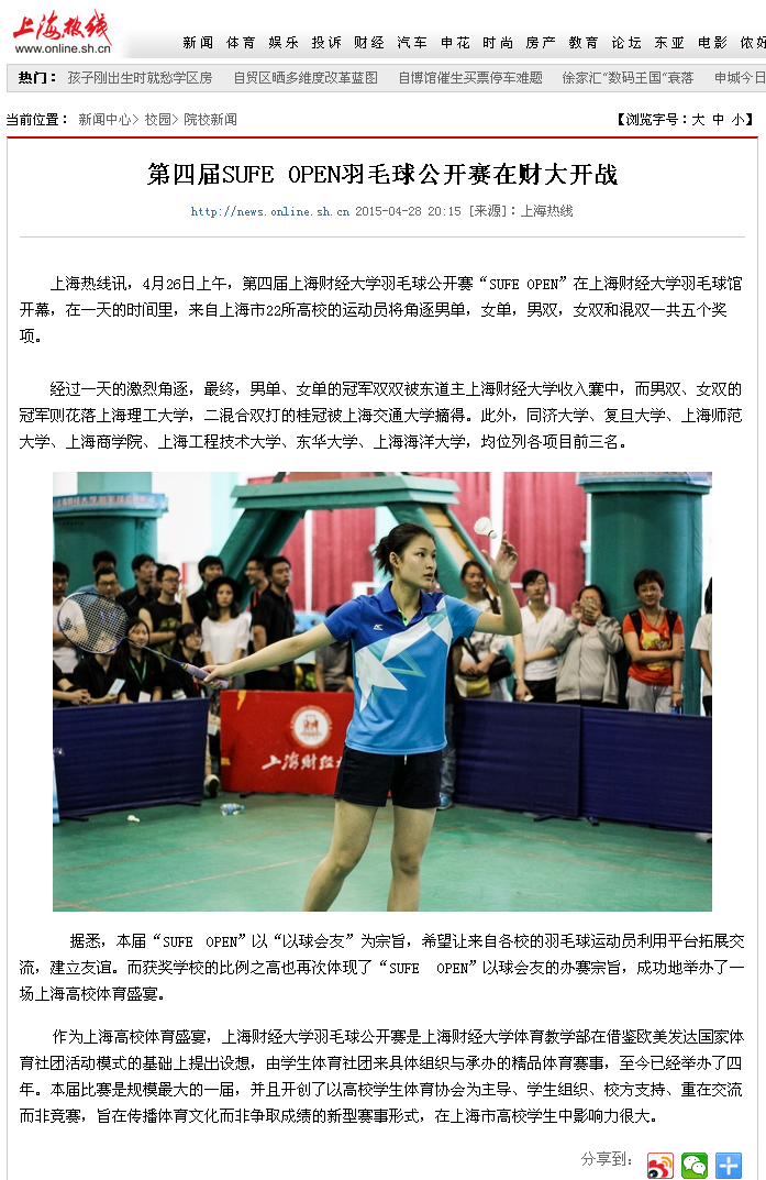 上海热线全程关注第四届SUFE OPEN羽毛球公开赛