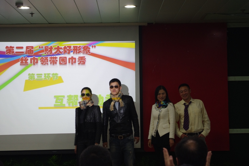 2012年11月27日12:30,在校工会精心组织下,上海财经大学第二届“心领美”丝巾领带秀比赛在行政大楼一楼报告厅隆重举行,体育教学部教职工代表队在比赛中充分展现了体育人的健康、阳光、运动和活力,在参赛的19支代表队150余名参赛选手中脱颖而出,荣获男教师组一等奖、女教师组二等奖和男女混搭组一等奖,赢得了现场的一片喝彩。