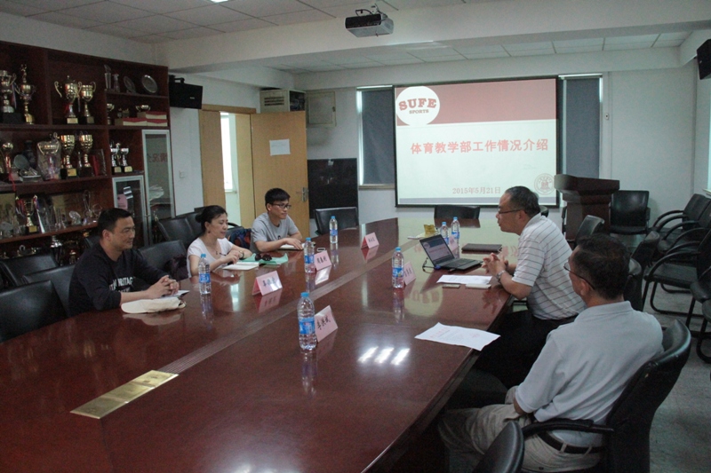 5月21日下午,浙江传媒学院大学体育教学部教学办主任周春俐、大体部教师辜德宏副教授、教学秘书韩安逸老师至我校体育教研部进行实地调研,体育教学部主任吕季东教授、副主任李洪斌老师、办公室李国伟老师对来访专家热情接待。双方就体育课程建设、体质健康测试、体育科研等问题进行了交流。浙江传媒学院调研组对我校在学科建设和课程改革方面取得的成绩给予了高度赞赏,希望今后能增进交流,加强互访,共同促进学校体育发展。