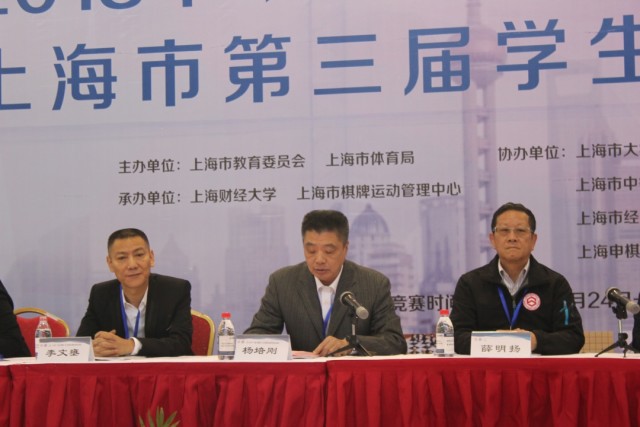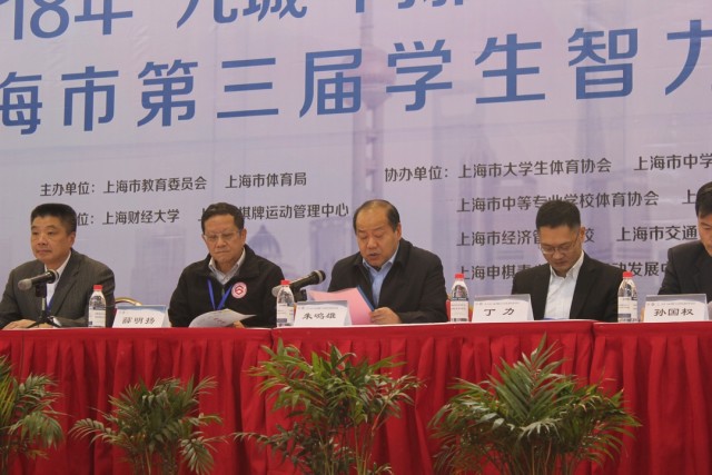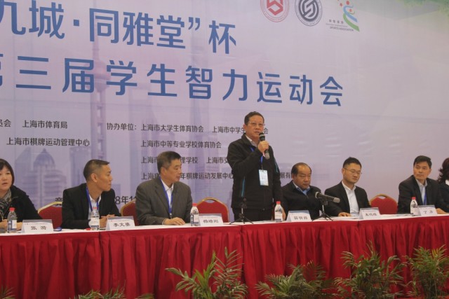 接着,上海市体育局副巡视员杨培刚代表上海市体育局讲话,运动员和裁判员代表分别宣誓。最后,上海市大学生体育协会会长、上海市中学生体育协会名誉会长薛明扬先生宣布智运会开幕。