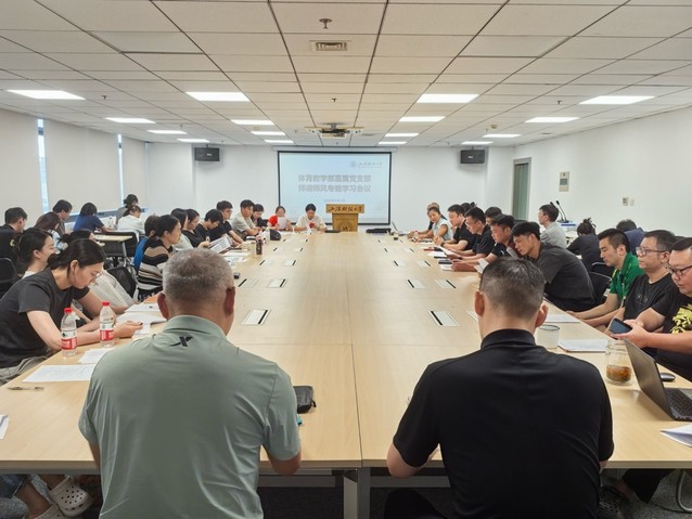 在当日下午的全体教师会议上,吕季东书记结合习近平总书记在纪念大会上的重要讲话谈到:“总书记关于‘铭记历史、缅怀先烈、珍爱和平、开创未来’的谆谆教诲,为我们指明了体育育人的方向。盛大阅兵展示的不仅是人民军队的昂扬风貌,更是伟大抗战精神的现实传承。作为高校体育教师党员,我们必须将家国情怀融入教育教学全过程。”