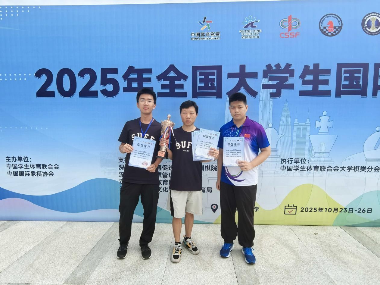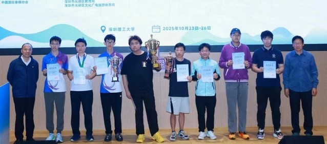 10月26日,2025全国大学生国际象棋锦标赛在深圳理工大学圆满闭幕,共有全国各地37所高校的114名大学生棋手参加本项大赛,参赛学校数量与覆盖范围均创下新高。我校共派出六名队员出战,经过九轮激烈角逐,取得了两金两铜的优异成绩,位居奖牌榜榜首。