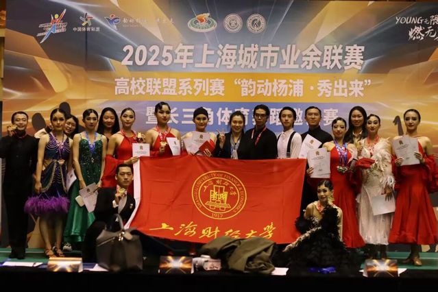 上财体育舞蹈队在团体赛中也表现出色,孟乐瑶、李旻轩、麦梓峰、孙一萌、马志奇、胡海涛夺得六人银牌探戈第一名。