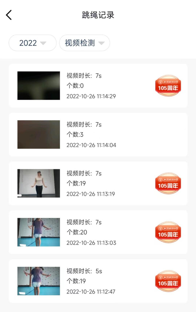 跳绳记录:点击进入跳绳记录页面,可查看历史跳绳记录;
