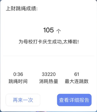 详细报告:结束弹窗中可点击查看详细报告,进入本次跳绳报告明细,如下图。
