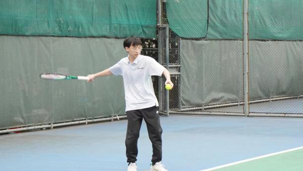 十五分钟的发球练习结束之后,大家在教练的指导下进行了单打战术练习,通过练习斜线对抽,四拍内变线,提高对抗和变线战术能力与全场控球能力。网球在天空中划过优美的弧线,队员们在场上积极地跳跃跑动,挥洒着汗水与热情,展现着青春的激情与活力。