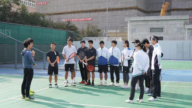 接着,增尾怜央楠教练指导大家进行了随上底线破网和网前截击对抗训练。在增尾教练的耐心指导下,同学们逐渐领会了要义,在网球实践中进行练习。
