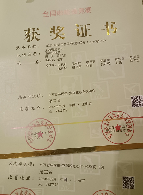 In this league, the SUFE cheerleading team sent a total of 2 teams (15 players) to participate. Under the leadership of coach Wang Min, we won the second place in the group flower ball self-selection and the third place in the group flower ball regulations.