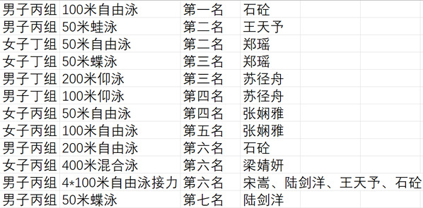 Under the leadership of coach Xu Yanjun, the members of the high-level swimming team of Shanghai University of Finance and Economics competed at a high level, showed their style, and showed their sportsmanship of courage and hard work. A total of one gold, two silver, two bronze, two 4th, one 5th, three 6th, and one 7th place.