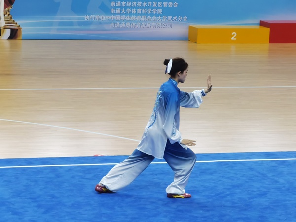 In the first event, the A group Dragon-Snake Form Taiji competition, our university’s contestant Wang Yujie secured third place with her fluid movements and precise techniques. In the subsequent Wu-style Taiji competition, competitors faced even more intense challenges. Our student Chen Yiling, undaunted by strong contenders, performed steadily to win first place in this event. Wang Yujie also performed admirably, finishing in fifth place. Finally, in the Yang-style Taiji competition, Chen Yiling maintained her excellent competitive state, achieving fourth place with her steady steps and graceful movements.