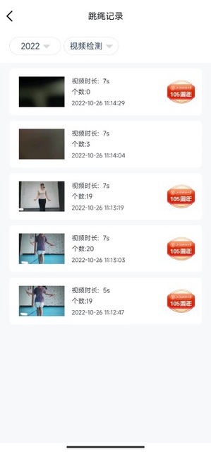 Rope skipping record: Click “the rope skipping record” to view the historical rope skipping record;