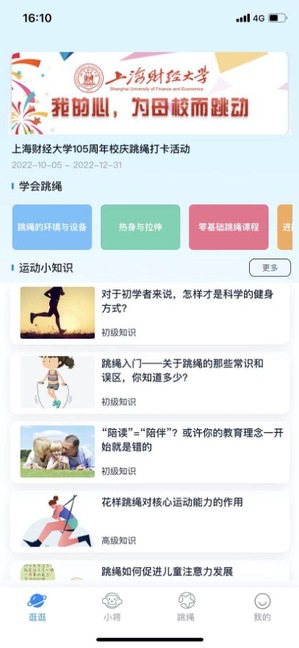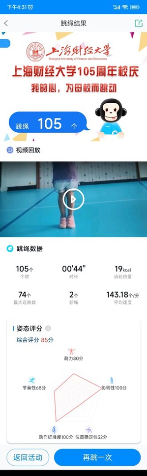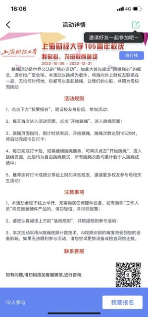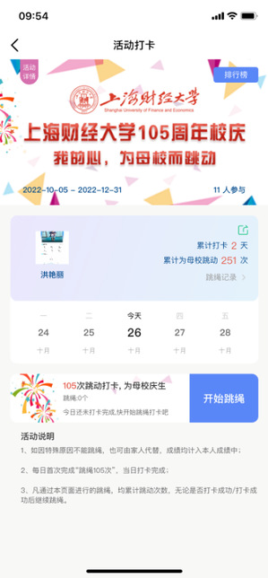 At the top is the 105th anniversary rope skipping activity of Shanghai University of Finance and Economics. Unregistered users can click here to enter the registration certification. Registered users can click here to enter the activity punch-in page.