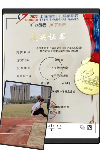 Pan Yuhan, a freshman of the School of Finance, participated in the women's long jump competition. She finally won the first gold medal of SUFE with an outstanding score of 4.84m.