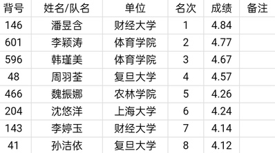 Huang Jiayi won the eighth place in the 400 meter race in the women's group. The 4* 100 meter relay team in the women's group composed of Cui Menglu, Wang Jiaxin, Li Tingyu and Pan Yuhan also won the eighth place.