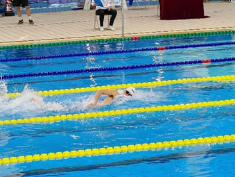 本次比赛财大高水平游泳队共派出14名队员、阳光组派出6名队员参赛。天虽然很冷,零下4-5度,但队员们越战越勇,在疫情严重的情况下队员们依然拿出最好的状态积极应战,在第一场比赛法学院的龚宇辰同学经过顽强拼搏,在高手如云的男子乙组50米蛙泳比赛中斩获金牌,拿下本次比赛我校首金,鼓舞了整个团队士气。下午第二场比赛中,法学院的梁靖妍同学也在400米混合泳中斩获金牌。