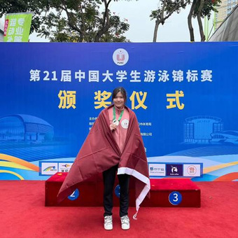 此后,我校游泳队的队员在接下来的比赛日中英勇晓战。来自法学院的郑瑶同学发挥稳定,在前一天女子丁组50米自由泳的比赛中与奖牌失之交臂之后,没有气馁。在第二天的50米蝶泳决赛中表现出色,为财大代表队再次赢得了一块宝贵的银牌。此外,来自商学院的陆剑洋和孙小涵分别获得了男子丙组50米蝶泳第六名和女子丙组200米仰泳、400米个人混合泳第六名和第八名的好成绩。公共经济与管理学院的张娴雅同学获得了女子丙组50米自由泳的第六名。运动员们展现了我校游泳队竞争力的同时,也为财大增添了许多傲人的荣誉。