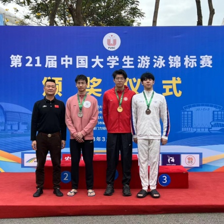 在第一个比赛日中,我校商学院大四的周翰泽同学在早上的男子丙组50米自由泳预赛中游出了24.19秒的好成绩,以预赛第六的身份挺进了决赛。在下午的决赛中,周翰泽同学发挥出色,超常发挥以23.82秒获得亚军,极大提升了游泳队的士气,同时也为自己的大学游泳生涯画上了圆满的句号。