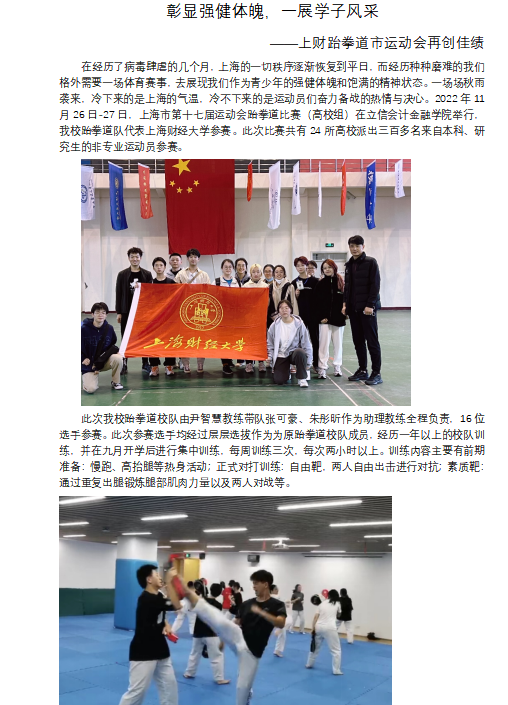 14 | 上海财经大学 | 一银五铜,上财跆拳道队破奖牌总数记录 | 徐潇潇 | 三等奖 | |